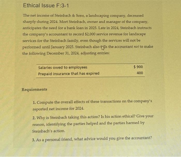 Source : twitter.comSolved Ethical Issue F:3 1 The income of Steinbach & | Chegg.com
