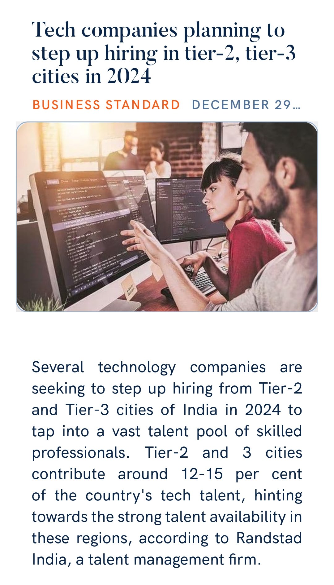 Source : twitter.comTech companies planning to step up hiring in tier 2, tier 3 cities