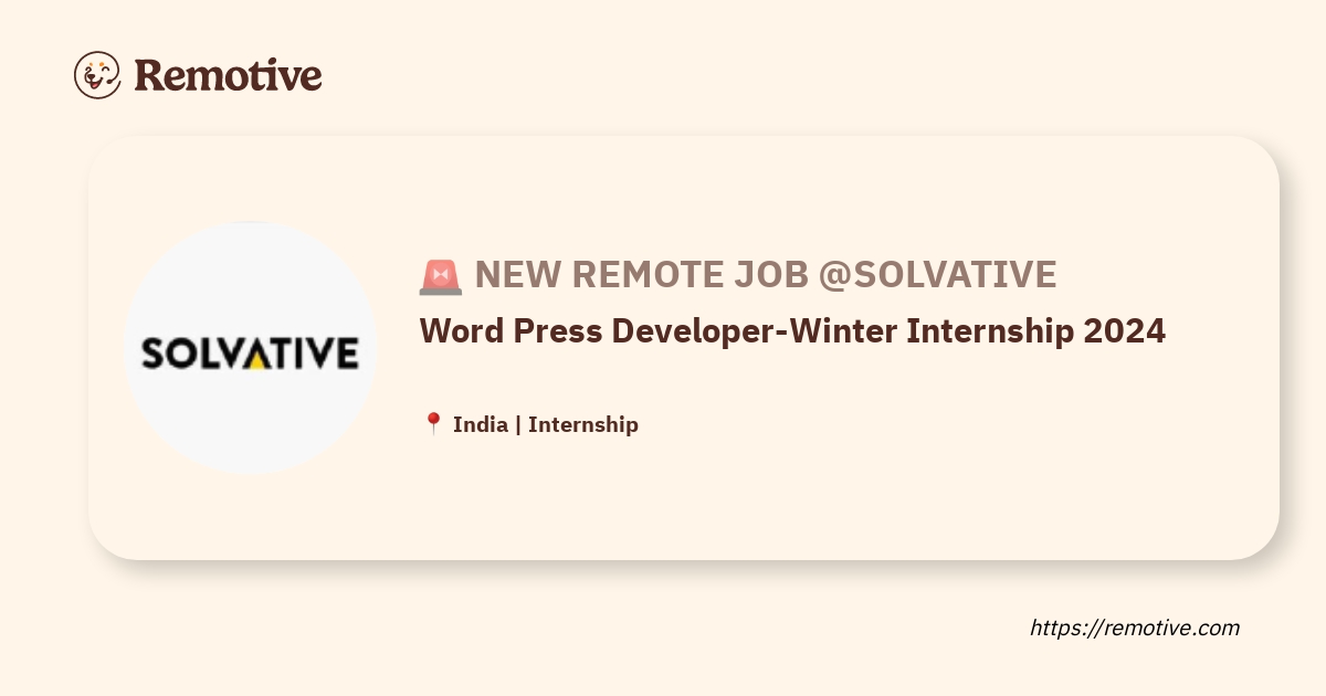 Source : twitter.comHiring] Word Press Developer Winter Internship 2024 @Solvative